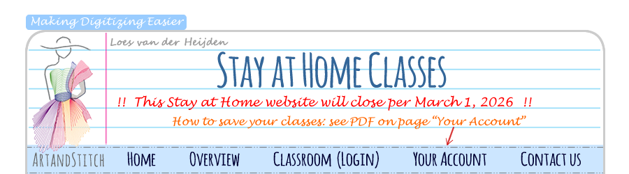 - In each Stay @ Home class Loes will show special drawing / digitizing techniques in Art and Stitch and various ways to get creative results, all focused on one subject.